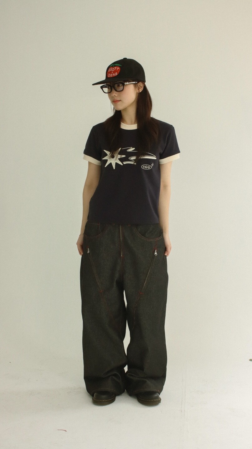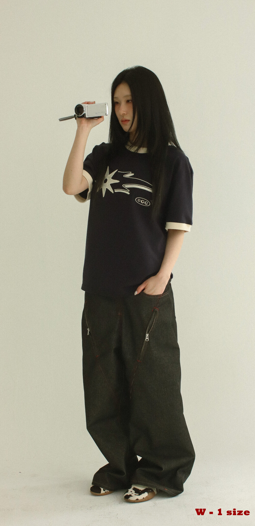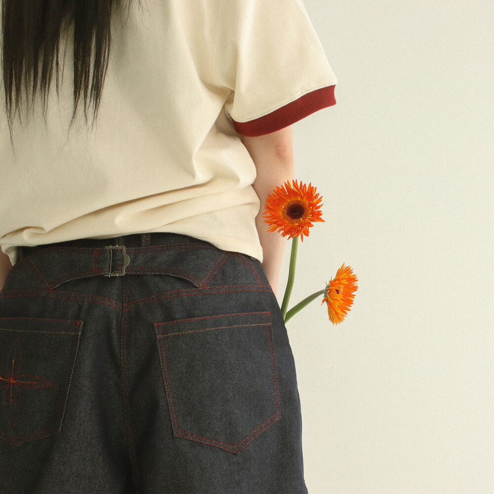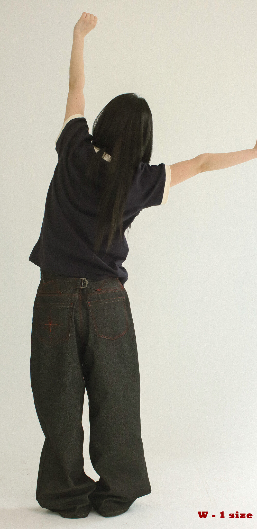 - 빈티지 팬츠를 복각한 디자인으로 와이드 핏으로 전체적인 실루엣을 연출하고, 전체적인 봉제는 일본기법 사용, 후면 신친백 디테일을 추가하여 빈티지 무드를 연출합니다.