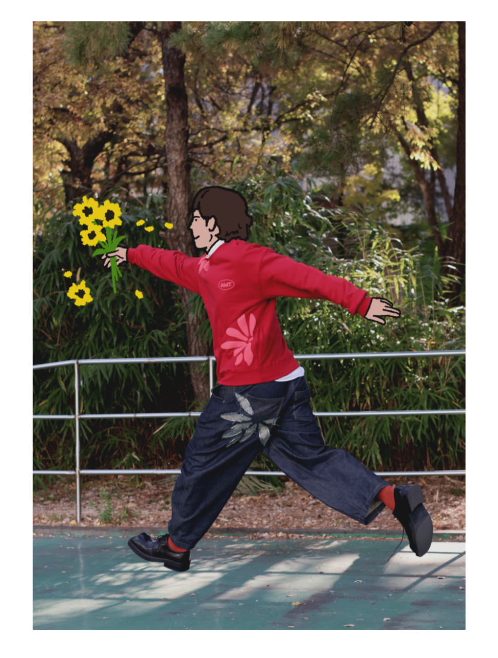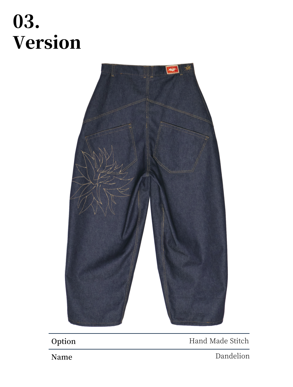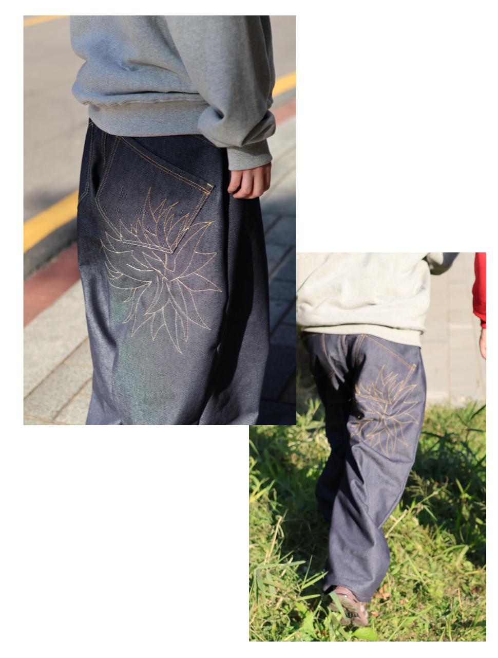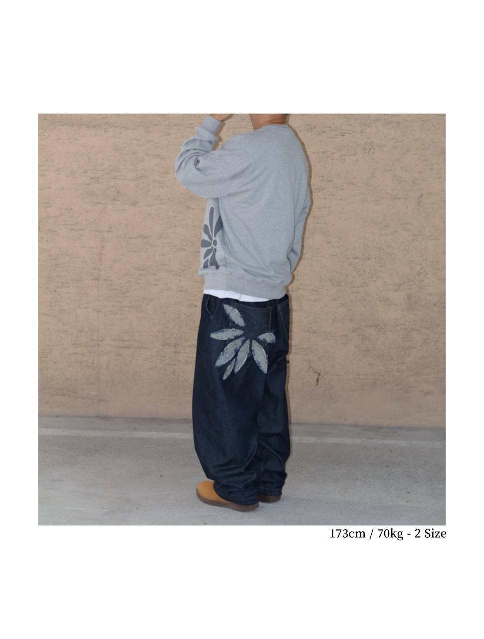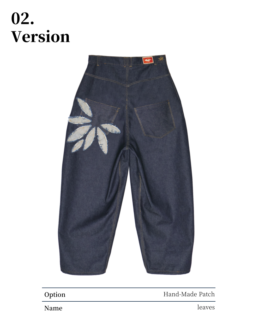 [Hand-Made「001」] Non-fade Wide Denim Pants [Flower series]