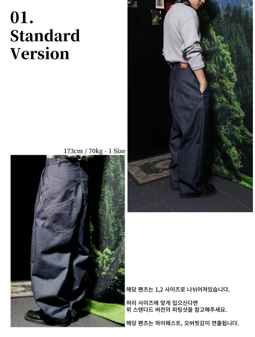 - 빈티지 팬츠를 복각한 제품으로 빈티지 무드를 연출하며, 와이드핏으로 캐주얼하게 입으실 수 있습니다.