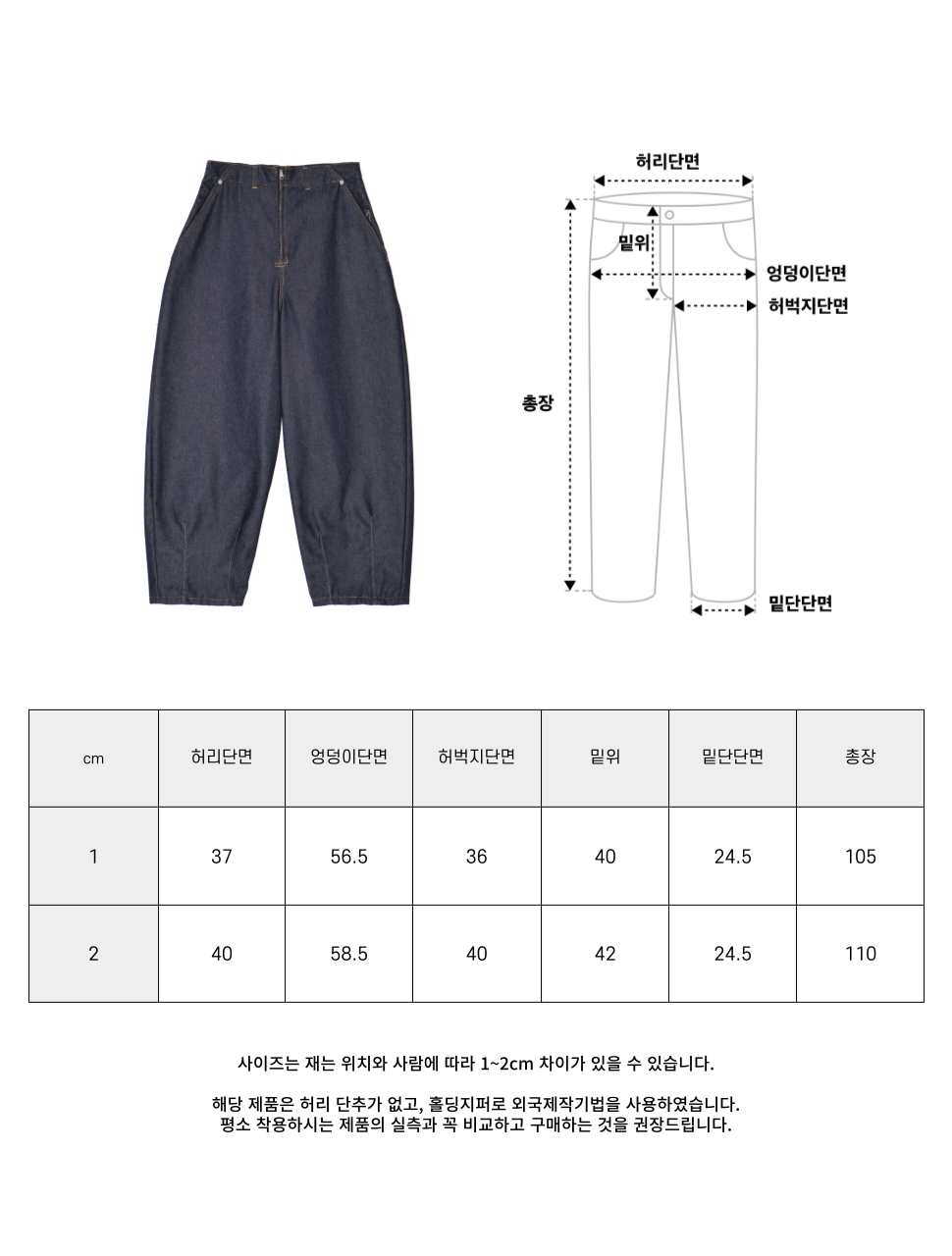 1 Size : 허리 37, 엉덩이단면 56.5, 허벅지단면 36, 밑위 40, 밑단단면 24.5 , 총장 105