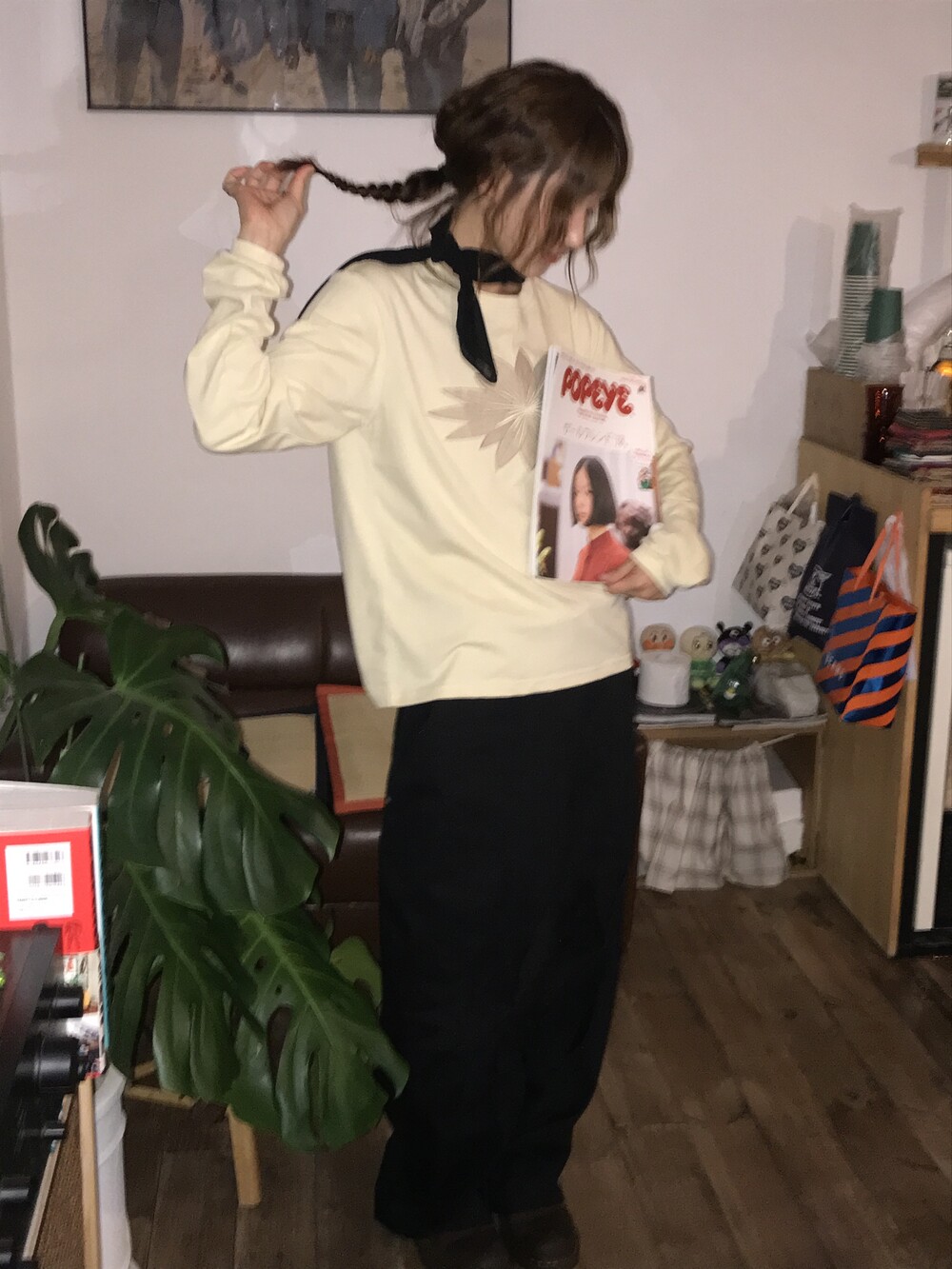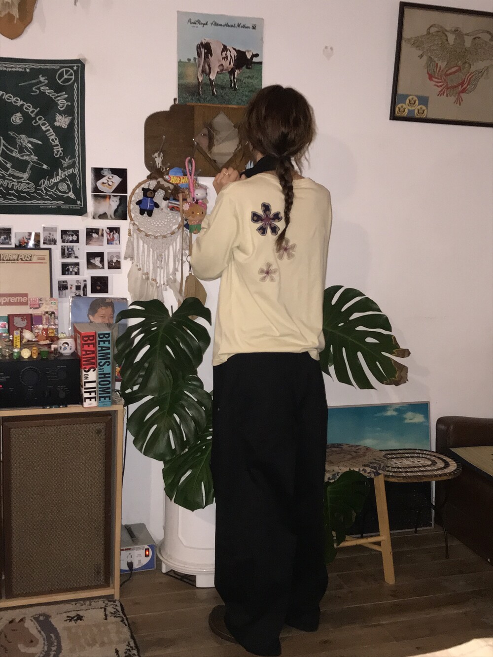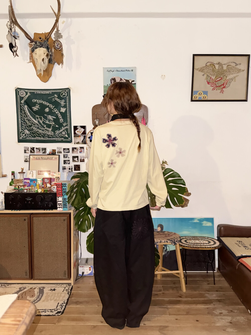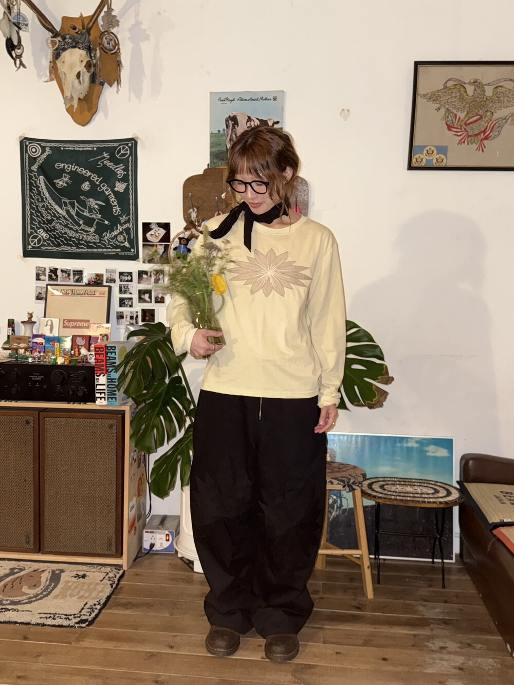 1사이즈는 여성과 남성 모두 착용 가능한 핏으로, 레귤러 핏에 크롭 기장으로 연출할 수 있습니다.