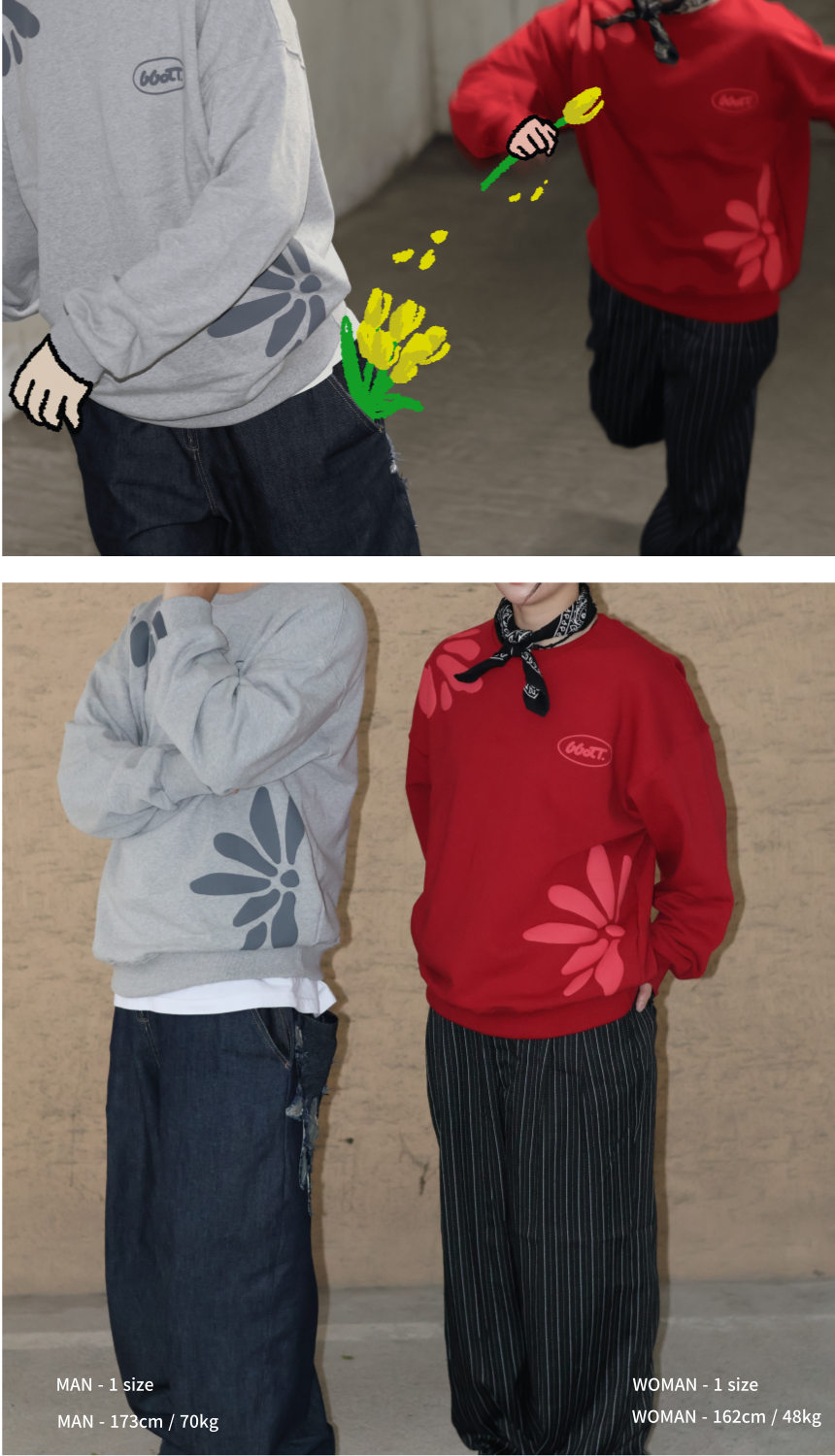- 전체적으로 여유로운 핏에, 밑단 시보리를 탄탄하게 제작하여 레이어드 스타일 등 다양하게 연출할 수 있습니다.