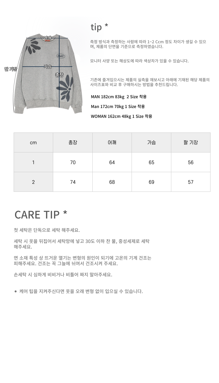 1 Size : 70(총장) 64(어깨) 65(가슴) 56(팔)