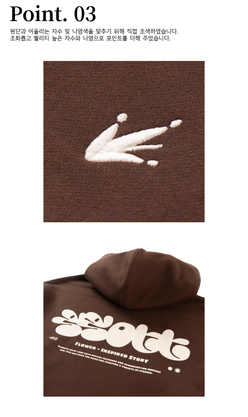 전면 스몰로고 자수와 후면 프린팅으로 포인트를 주었습니다.
