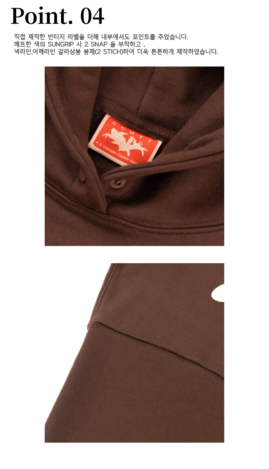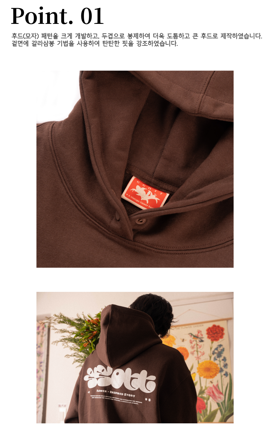 후드 부분의 패턴을 크게 수정하여 실루엣이 좋고 , 더 탄탄한 후드로 제작하였습니다.