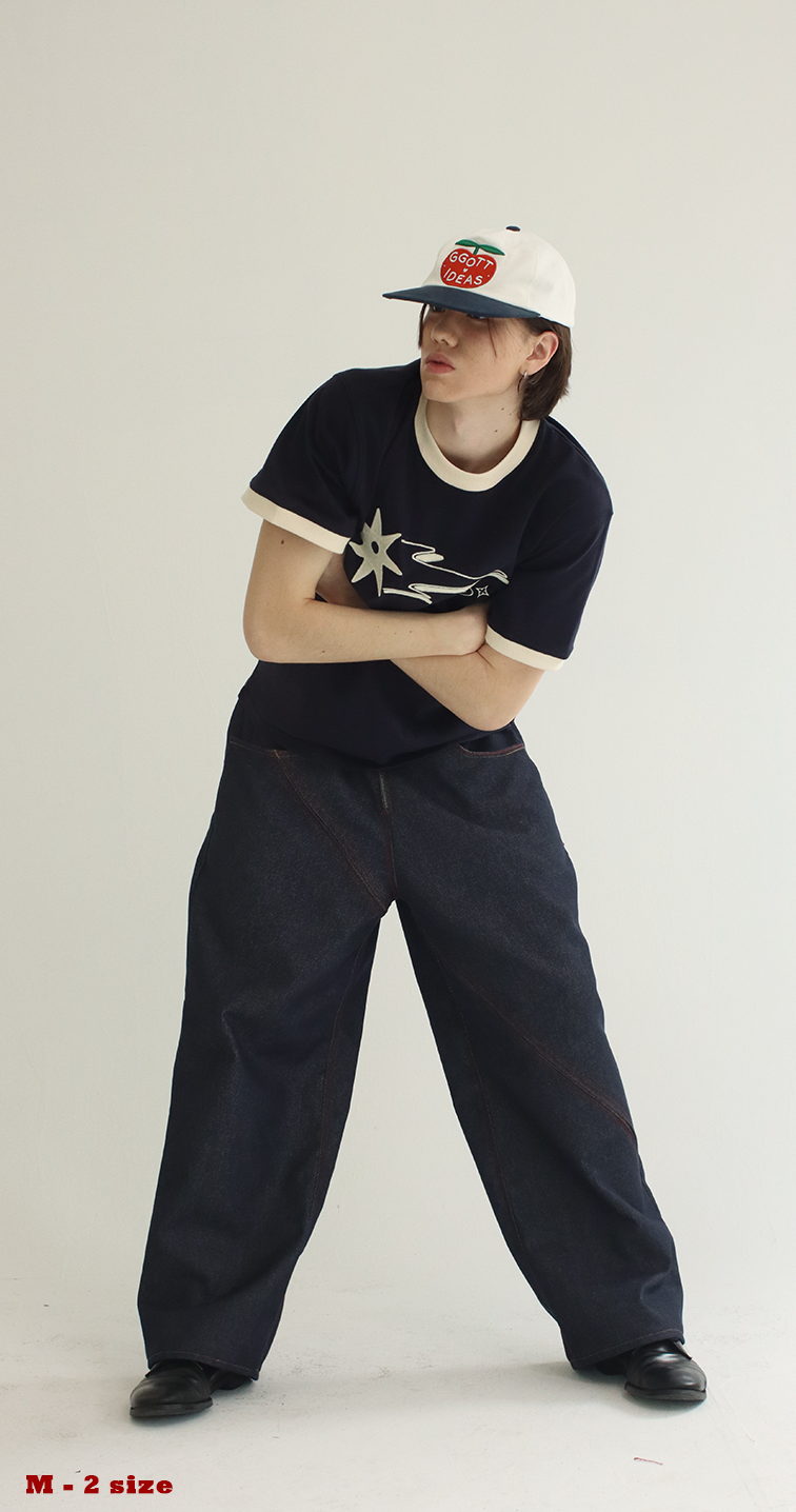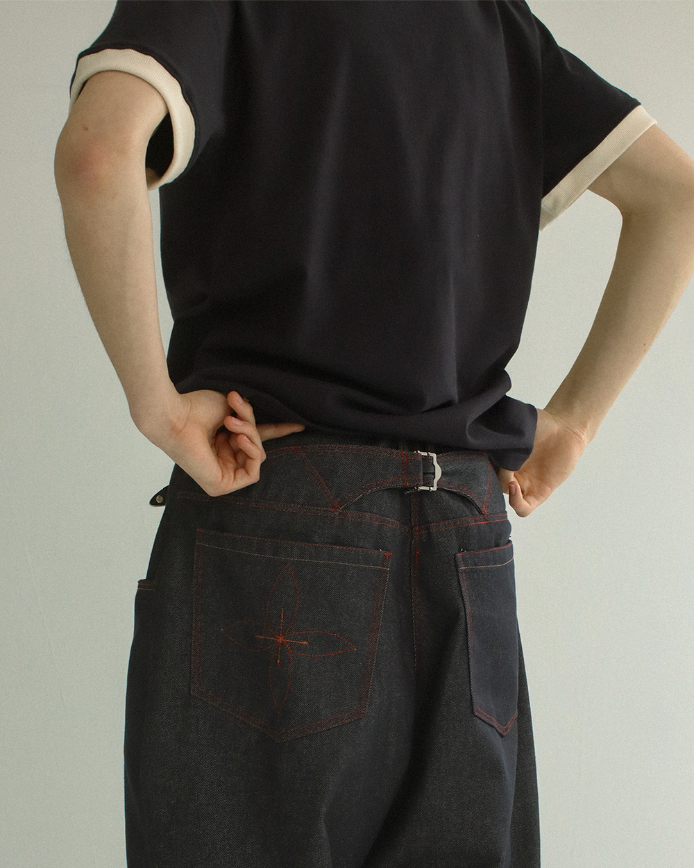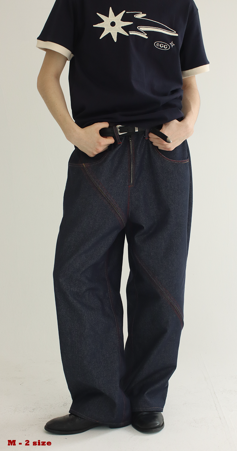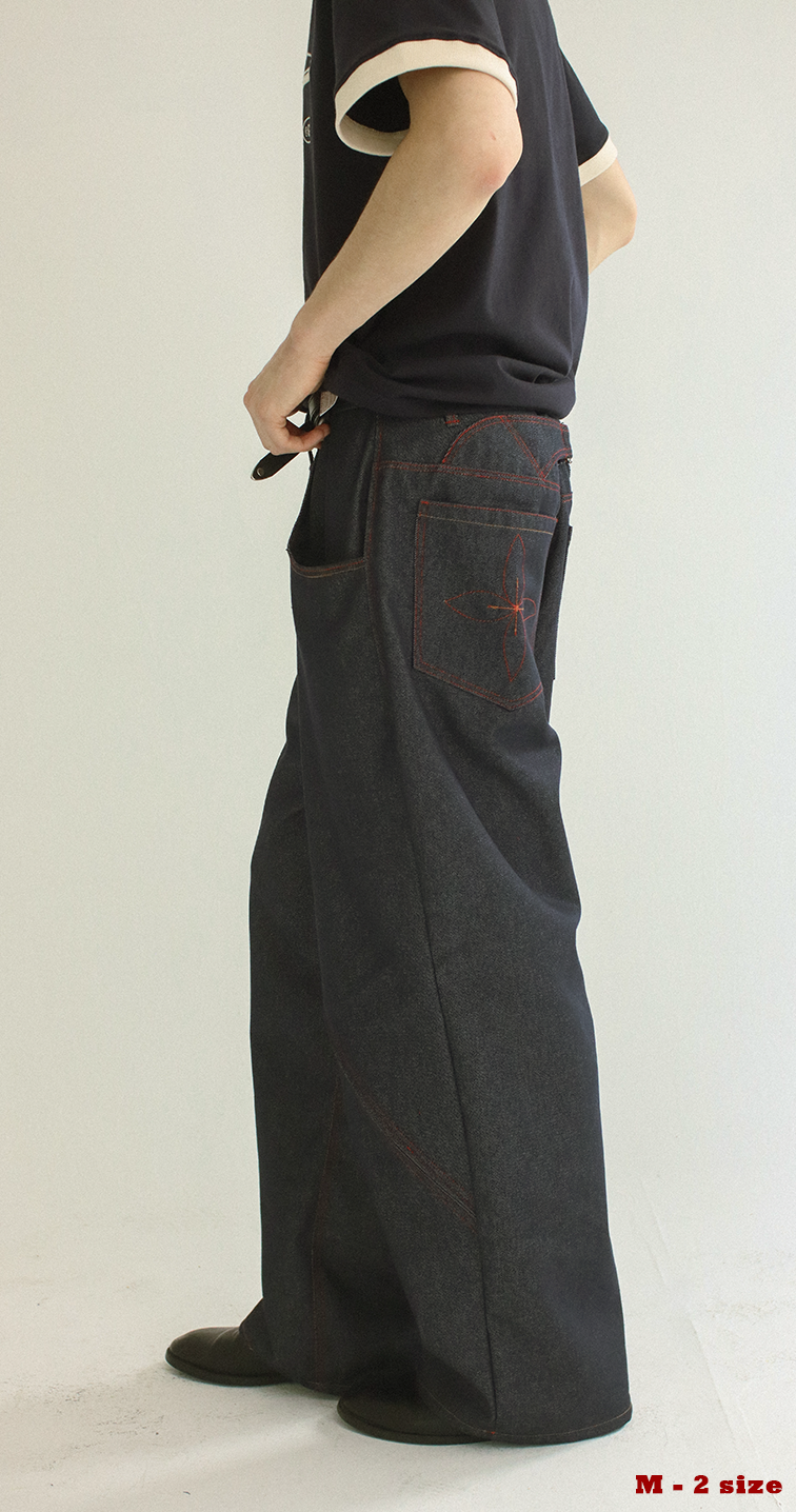 [Hand-Made「002」] Red Line Wide Denim Pants