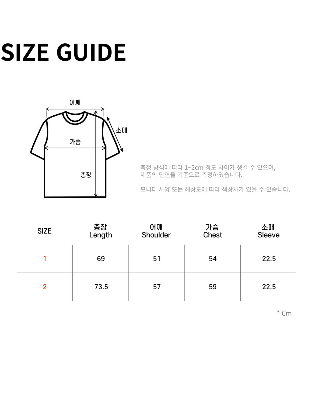 여유로운 품으로 1,2 사이즈 둘 다 오버핏으로 연출가능한 남녀공용 티셔츠입니다.