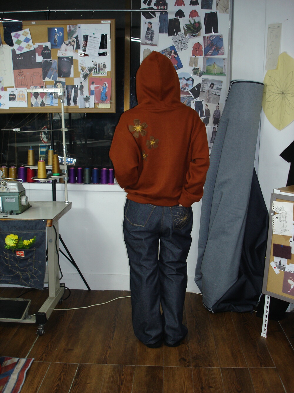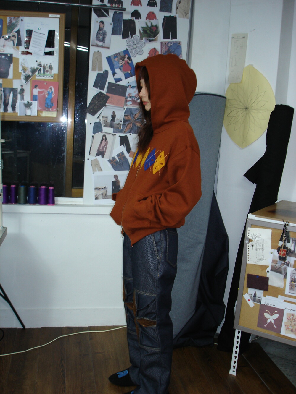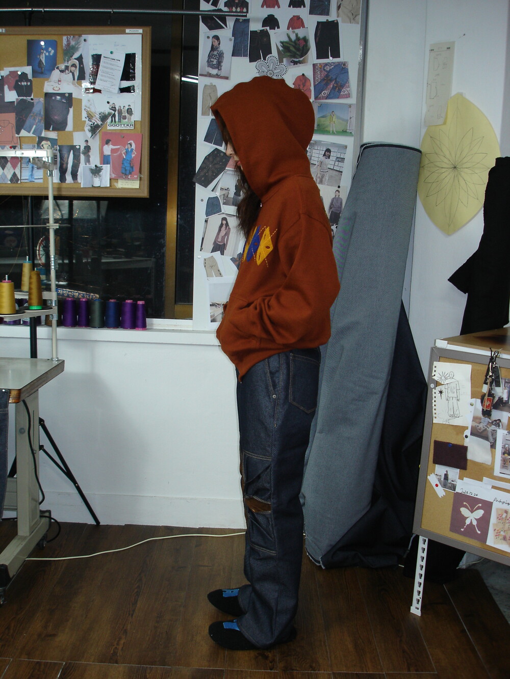 - 탄탄한 논페이드 데님 원단으로 제작함과 동시에 무릎 오리가미 기법에 스웨이드 원단을 활용하였습니다.