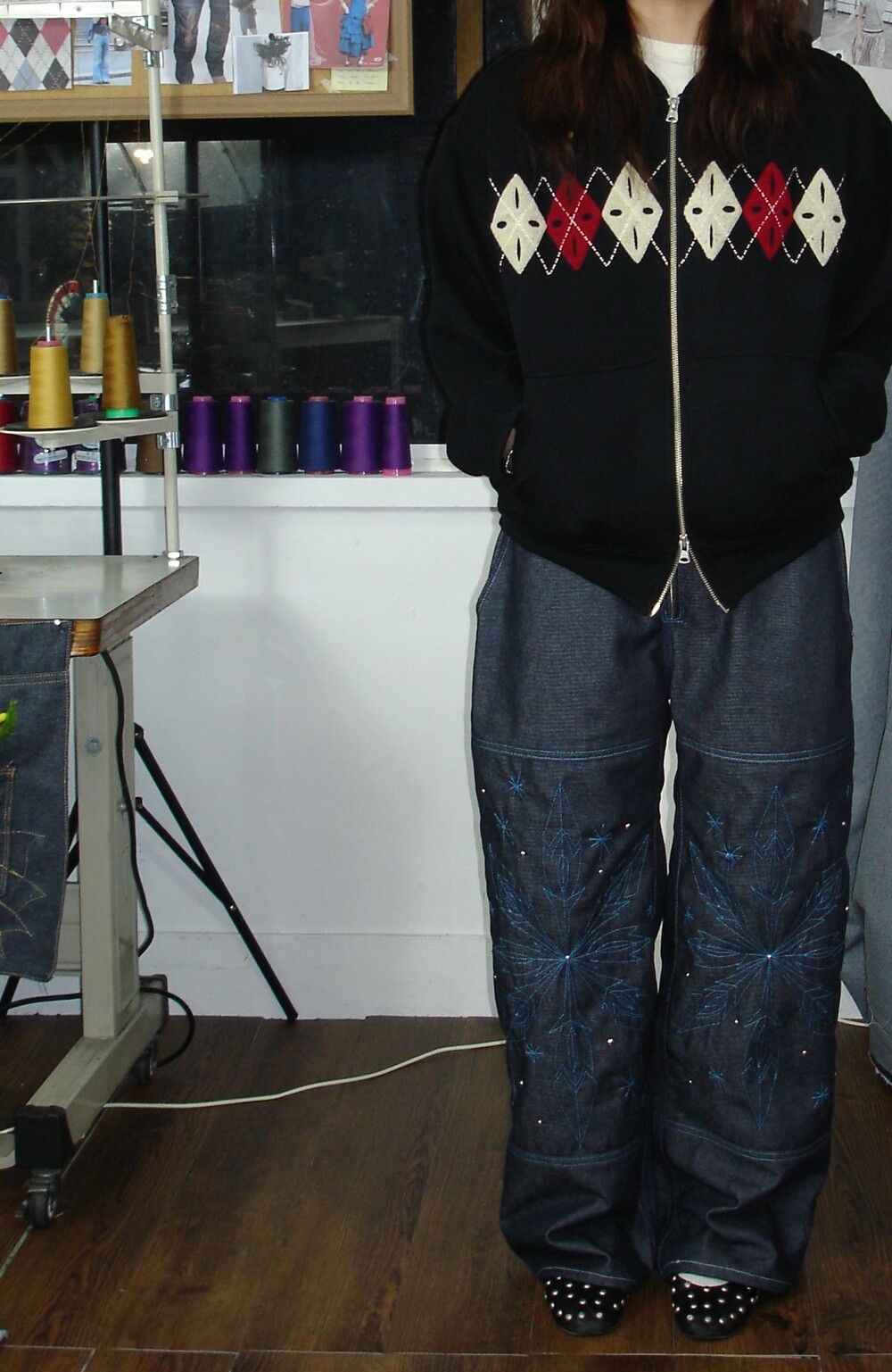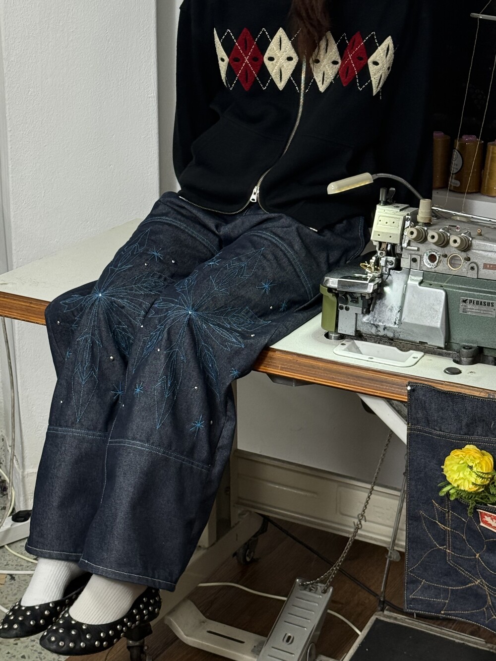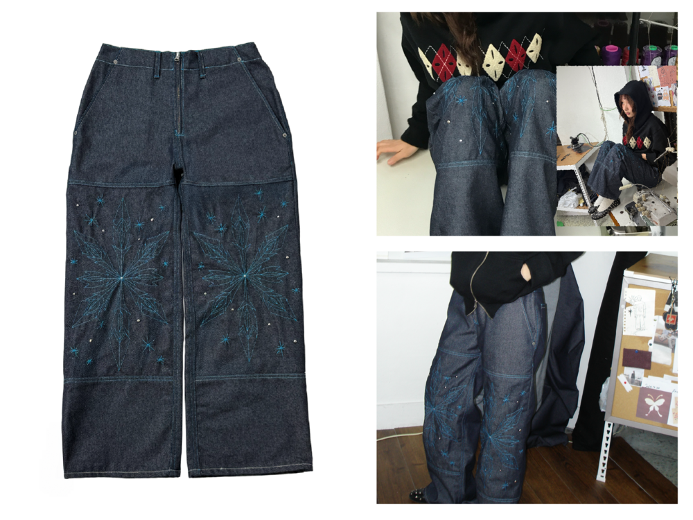 [Hand-Made「007」] Snowflake Studded Pants_Denim&Skyblue